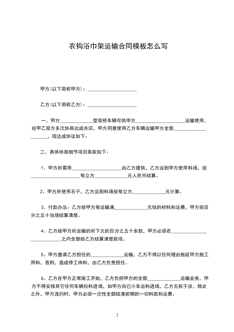 3、付款办法:乙方给甲方每运输满______________元钱的材料和运费,甲方按百分之五十当场结算清楚。
