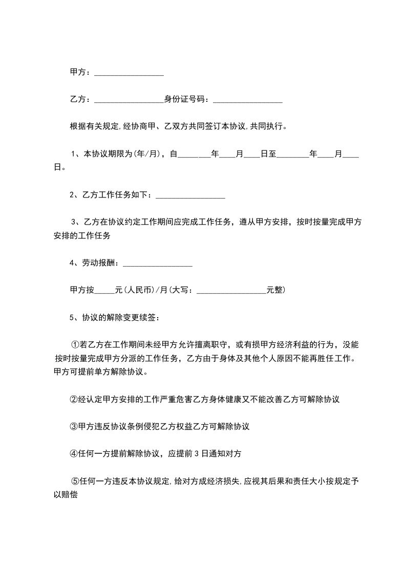 3、乙方在协议约定工作期间应完成工作任务,遵从甲方安排,按时按量完成甲方安排的工作任务