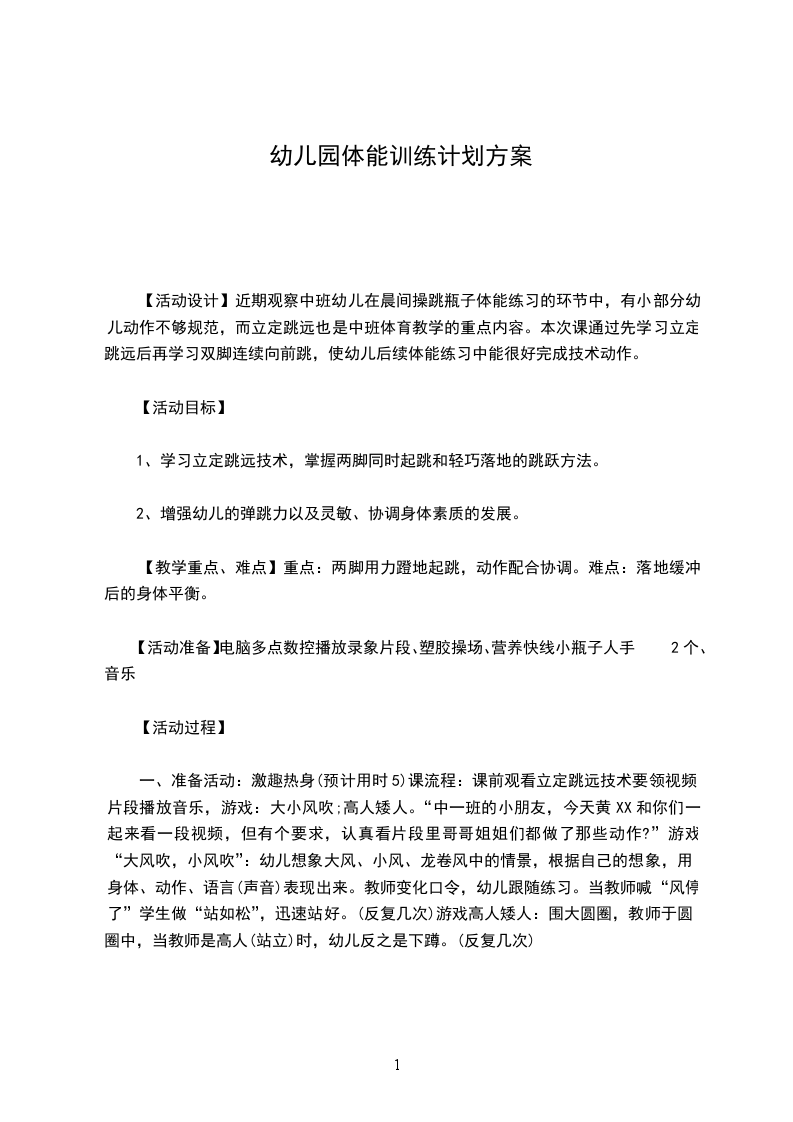 2、结束语,师生再见注:如果幼儿园无法提供上课所用器材,或其它的因素,体能教师可以协助对课程进行适度的调整或改动!幼儿园游戏体育教学教案(第2周)大单元攀爬、跳跃周单元宇宙小超人使用器材跳箱2个海绵垫4张教学目行为目标:独立自主勇敢自信果决判断的体能因素:弹跳力距离感平衡感协调性场地布