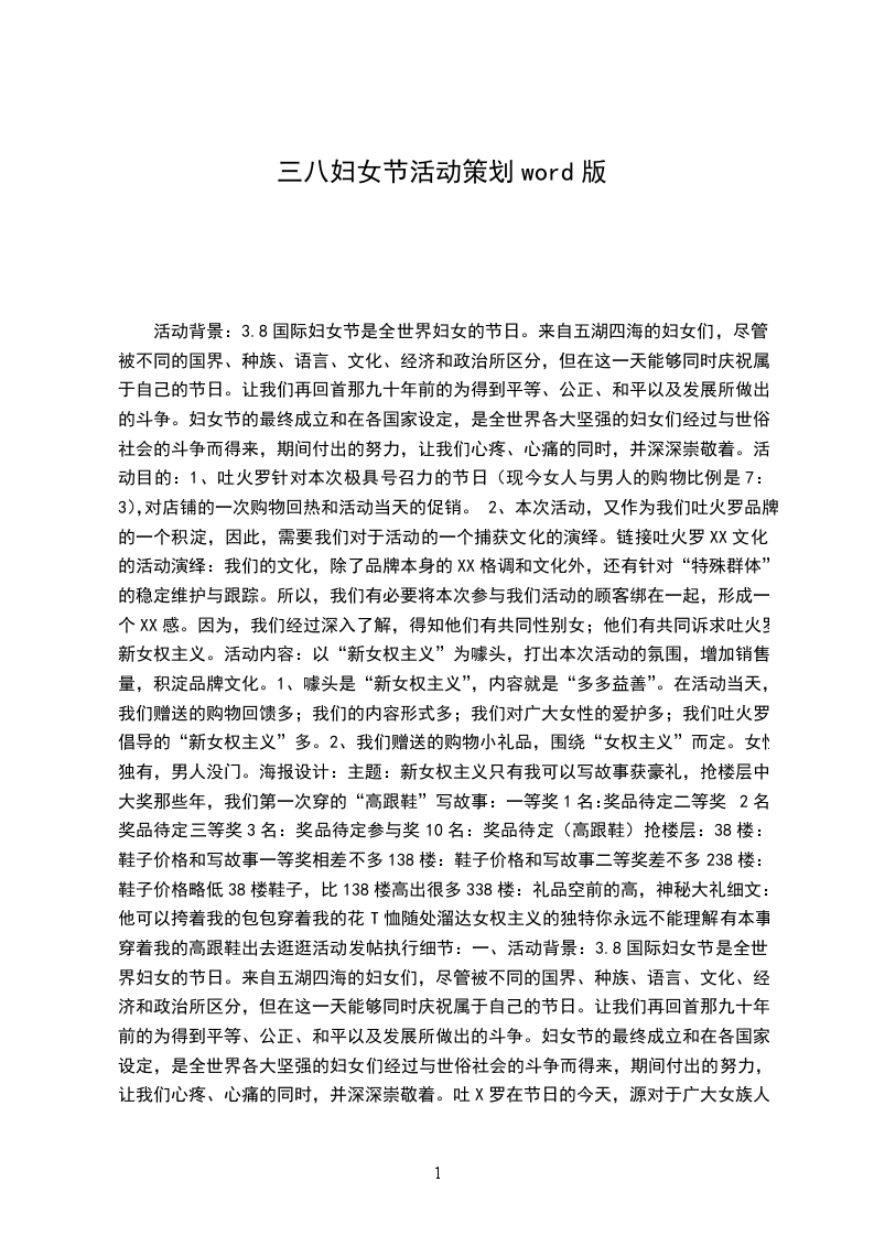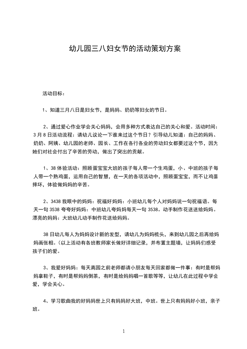 2、通过爱心作业学会关心妈妈,会用多种方式表达自己的关心和爱。活动时间:3月8日活动流程:请幼儿议论一下谁来过这个节日?引导幼儿知道:自己的妈妈、奶奶、阿姨、幼儿园的老师、园长、工作在各行各业的劳动妇女都要过这个节,因为她们对社会付出了辛苦的劳动,做出了突出的贡献。