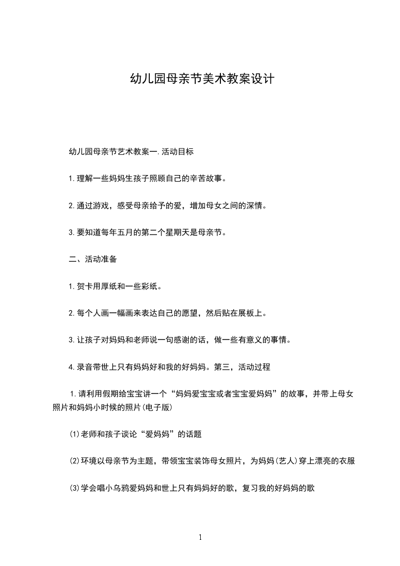 幼儿园母亲节艺术教案一.活动目标