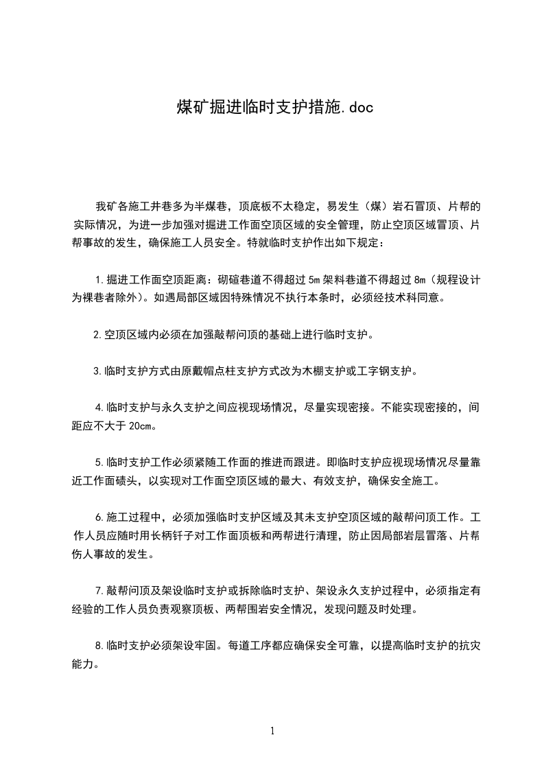我矿各施工井巷多为半煤巷,顶底板不太稳定,易发生(煤)岩石冒顶、片帮的实际情况,为进一步加强对掘进工作面空顶区域的安全管理,防止空顶区域冒顶、片帮事故的发生,确保施工人员安全。特就临时支护作出如下规定: