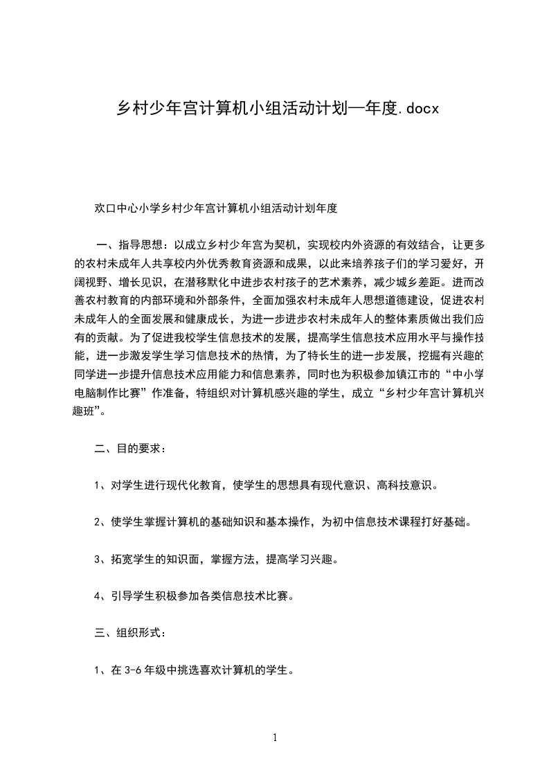 “乡村少年宫”计算机小组活动计划