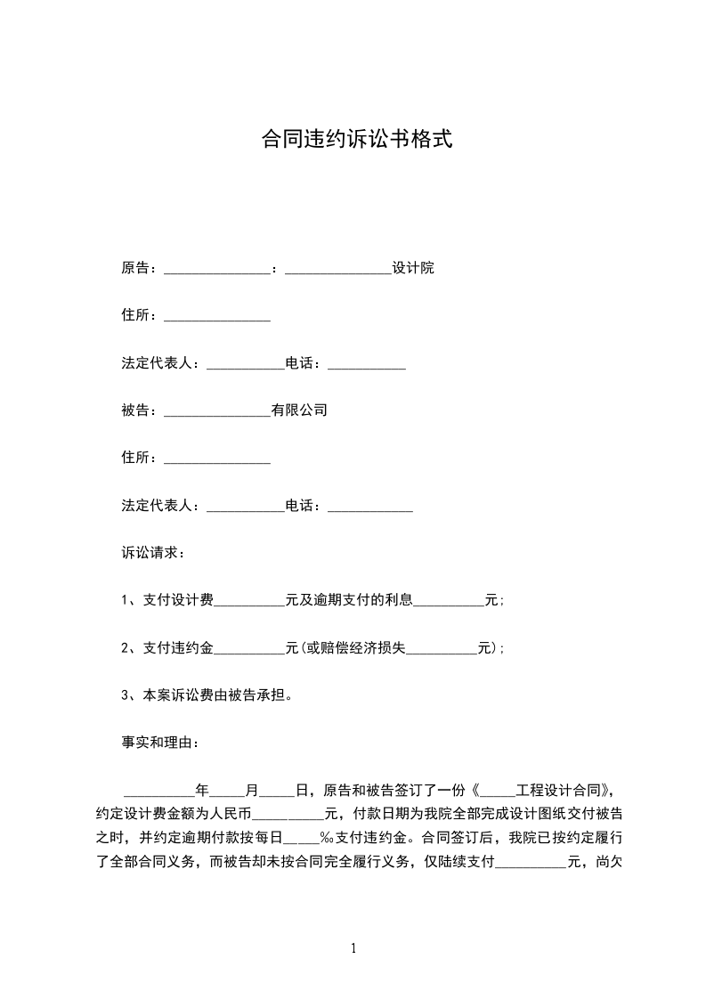 __________年_____月_____日,原告和被告签订了一份《_____工程设计合同》,约定设计费金额为人民币__________元,付款日期为我院全部完成设计图纸交付被告之时,并约定逾期付款按每日_____‰支付违约金。合同签订后,我院已按约定履行了全部合同义务,而被告却未按合同完全履行义务,仅陆续支付__________元,尚欠设计费__________元至今未付。经催要未果,故原告诉至贵院,请求支持原告的诉讼请求,以维护原告的合法权益。