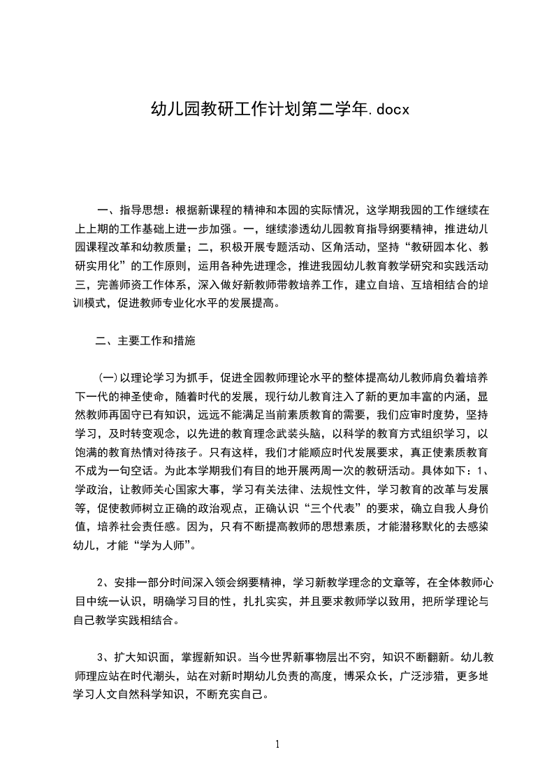 一、指导思想:根据新课程的精神和本园的实际情况,这学期我园的工作继续在上上期的工作基础上进一步加强。一,继续渗透幼儿园教育指导纲要精神,推进幼儿园课程改革和幼教质量;二,积极开展专题活动、区角活动,坚持“教研园本化、教研实用化”的工作原则,运用各种先进理念,推进我园幼儿教育教学研究和实践活动;三,完善师资工作体系,深入做好新教师带教培养工作,建立自培、互培相结合的培训模式,促进教师专业化水平的发展提高。