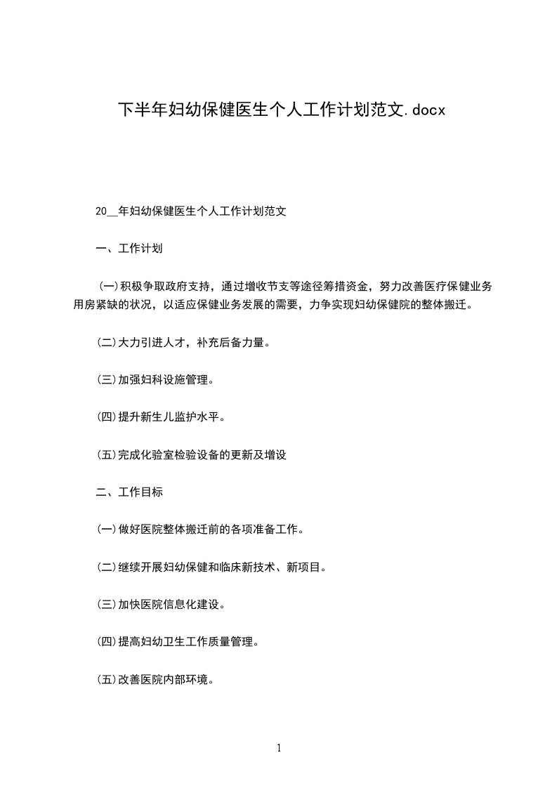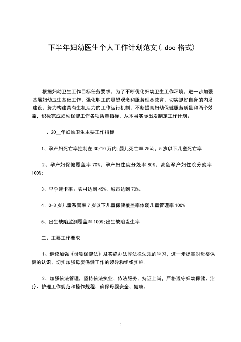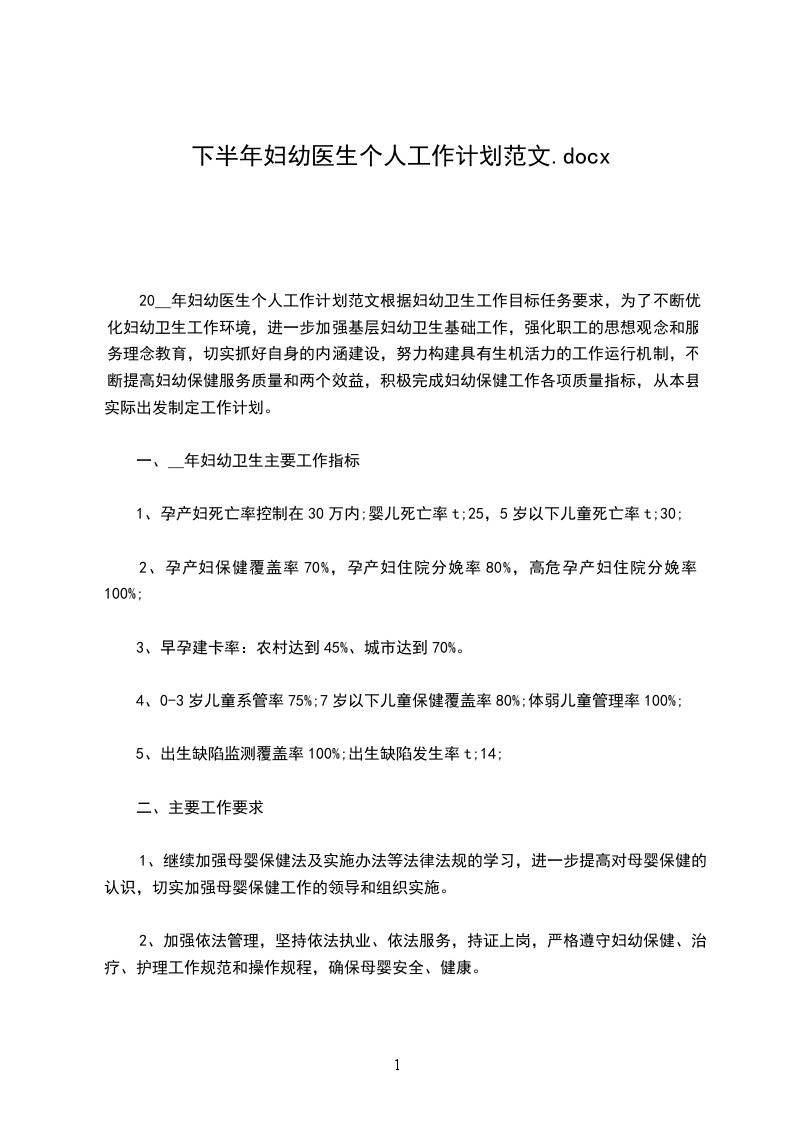 20__年妇幼医生个人工作计划范文根据妇幼卫生工作目标任务要求,为了不断优化妇幼卫生工作环境,进一步加强基层妇幼卫生基础工作,强化职工的思想观念和服务理念教育,切实抓好自身的内涵建设,努力构建具有生机活力的工作运行机制,不断提高妇幼保健服务质量和两个效益,积极完成妇幼保健工作各项质量指标,从本县实际出发制定工作计划。