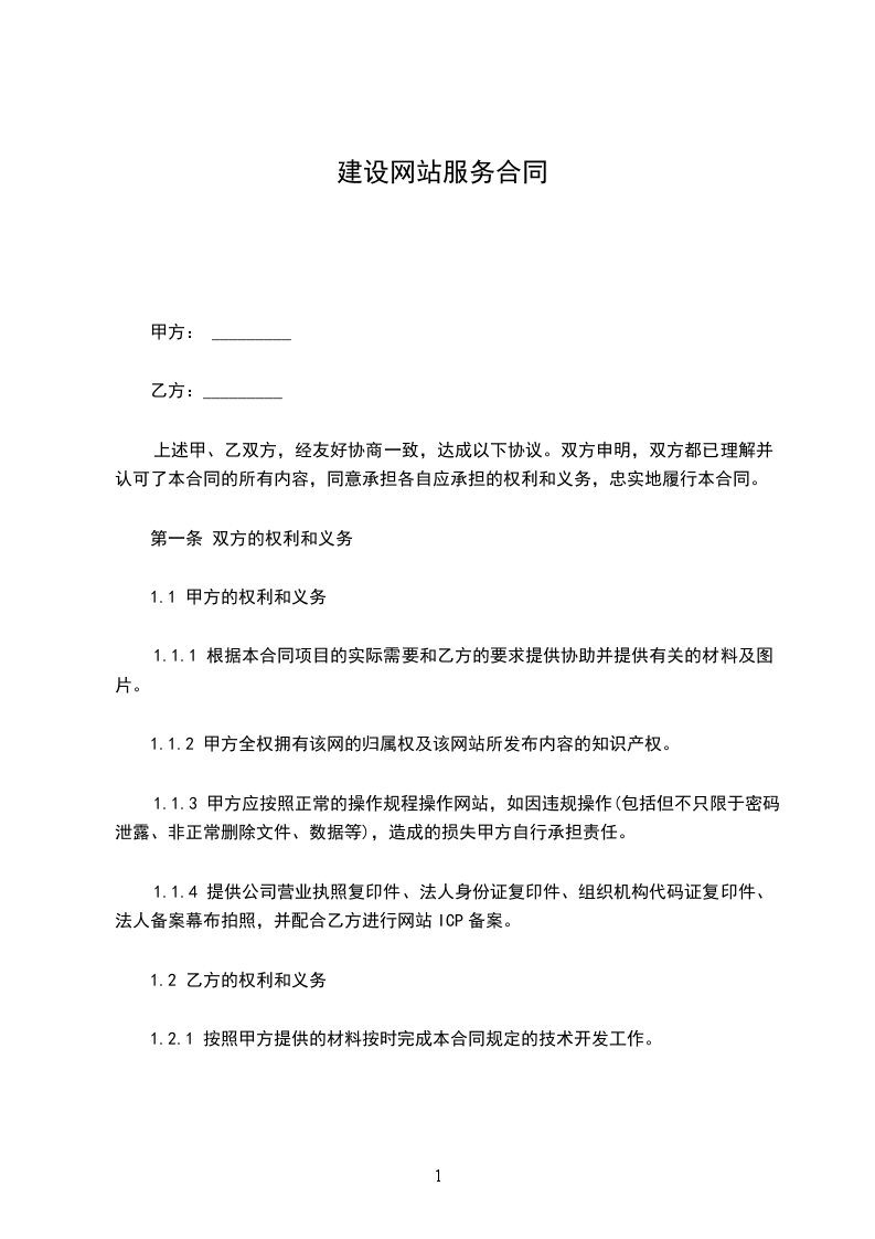 网站建设服务合同甲方:乙方:南宁XX公司上述甲、乙双方,经友好协商一致,达成以下协议。双方申明,双方都已理解并认可了本合同的所有内容,同意承担各自应承担的权利和义务,忠实地履行本合同。