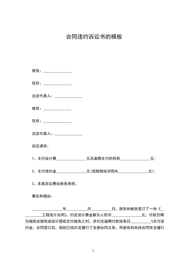 ________________年___________月___________日,原告和被告签订了一份《___________工程设计合同》,约定设计费金额为人民币________________元,付款日期为我院全部完成设计图纸交付被告之时,并约定逾期付款按每日___________%支付违约金。合同签订后,我院已按约定履行了全部合同义务,而被告却未按合同完全履行义务,仅陆续支付________________元,尚欠设计费________________元至今未付。经催要未果,故原告诉至贵院,请求支持原告的诉讼请求,以维护原告的合法权益。