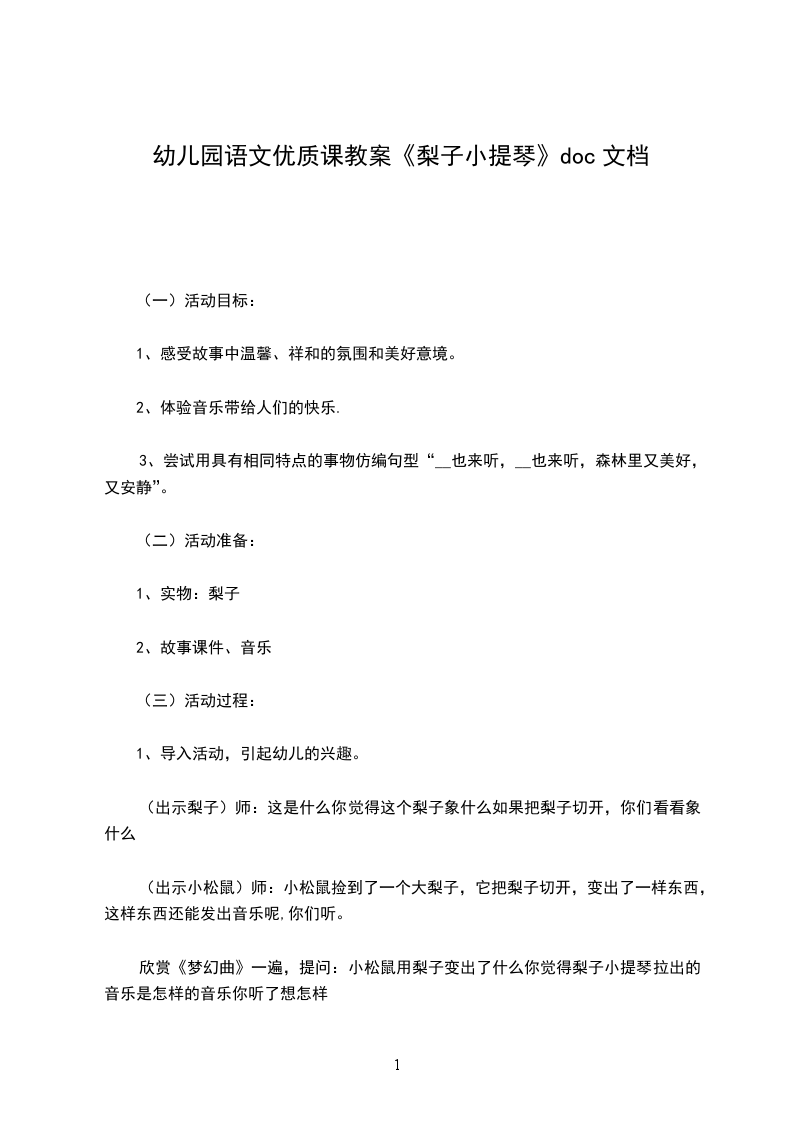 二、倾听故事,理解感受:孔融家一共有几个人?孔融是第几个孩子?孔融为什么要挑一个最小的梨子给自己?孔融对爸爸是怎么说的?(请幼儿学讲孔融的话)你们喜欢孔融吗?为什么?