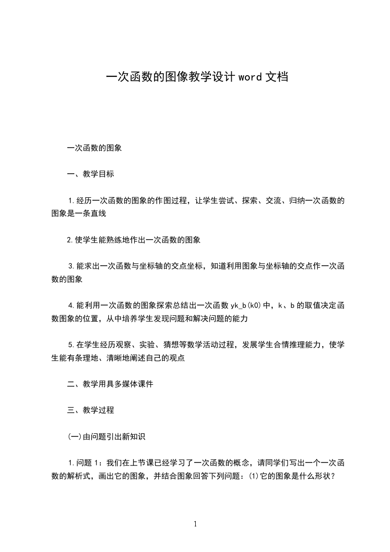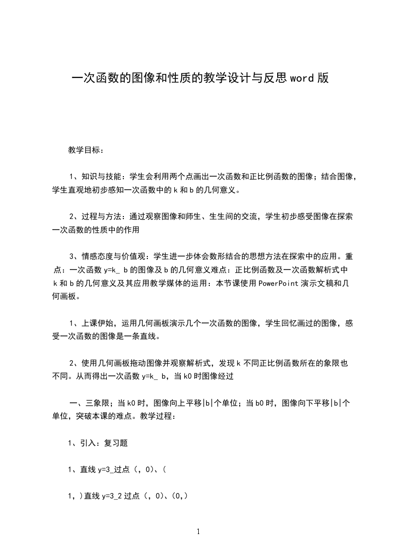 一次函数图像与性质教学设计教学目标知识技能