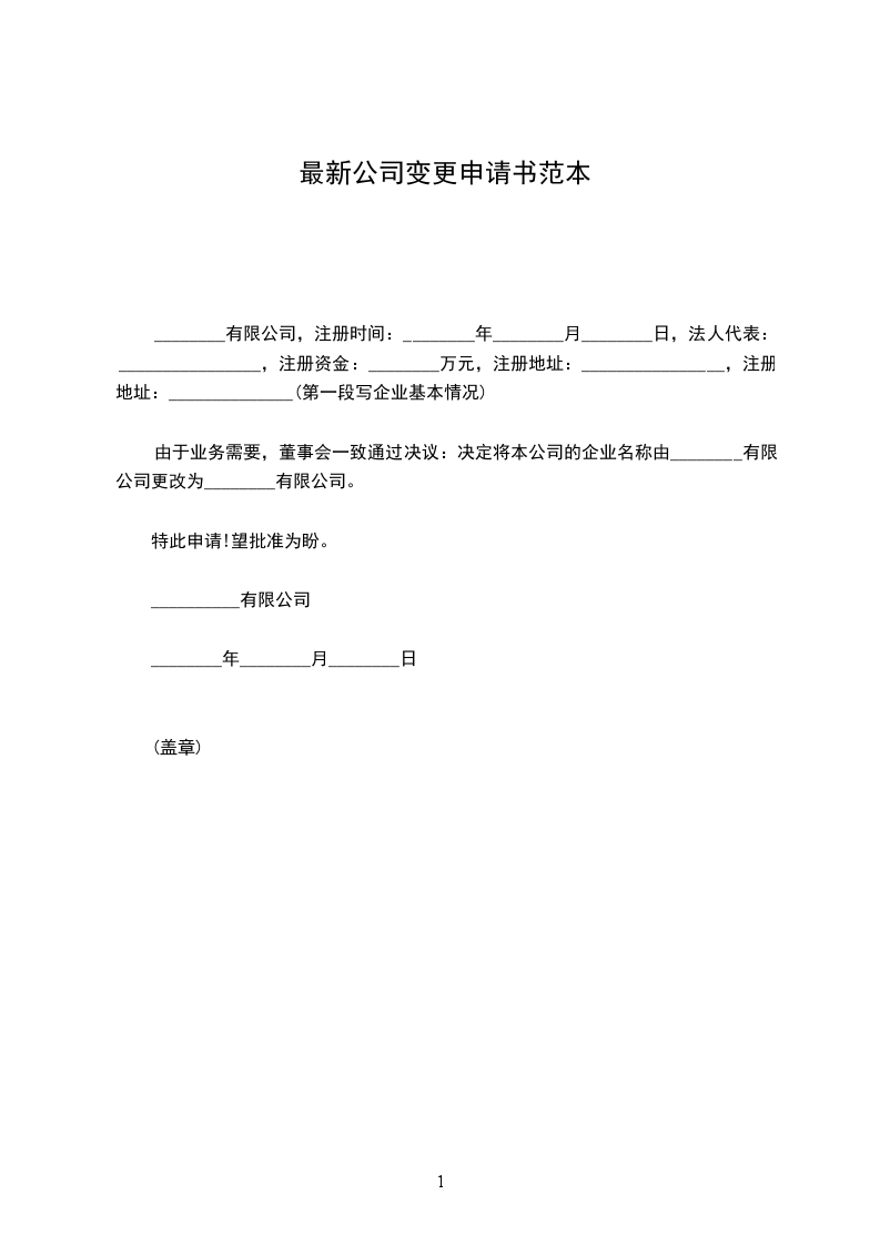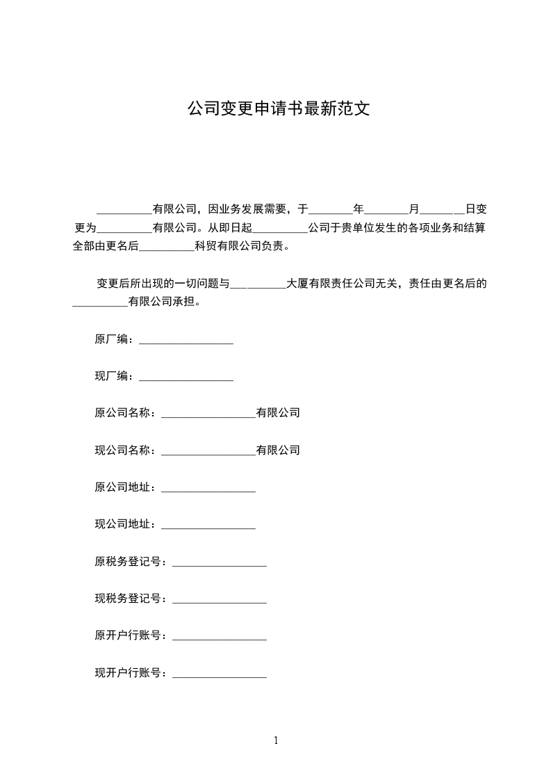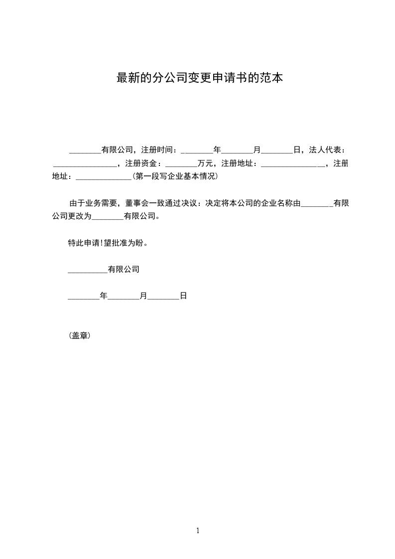 最新的分公司变更申请书范本