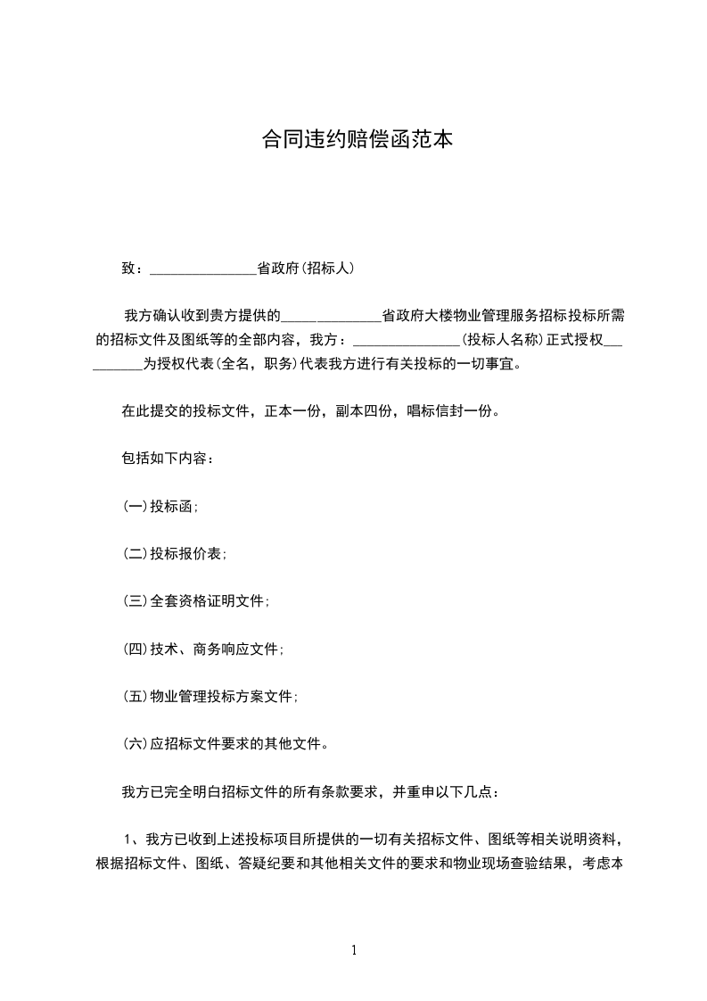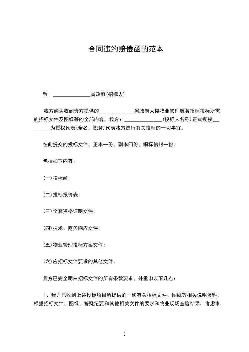 1、我方已收到上述投标项目所提供的一切有关招标文件、图纸等相关说明资料,根据招标文件、图纸、答疑纪要和其他相关文件的要求和物业现场查验结果,考虑本企业自身的实力及特点,我单位愿以人民币(大写)___________元(小写)__________元的投标报价