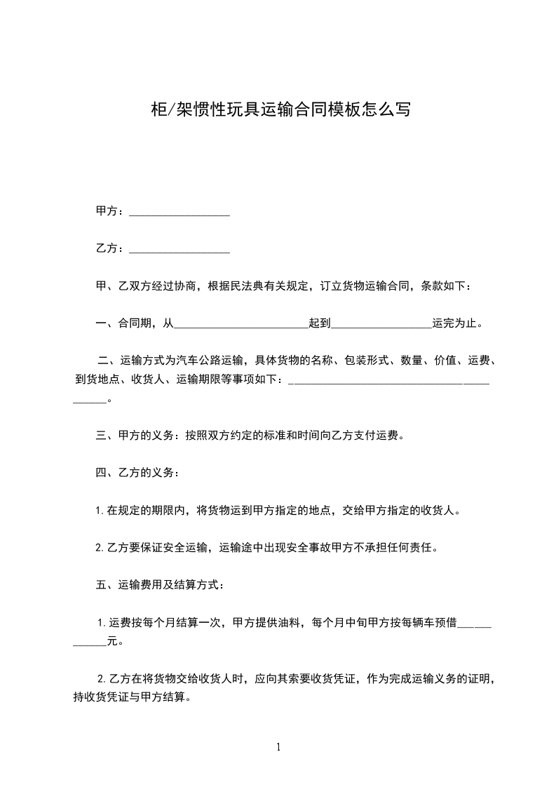 柜/架惯性玩具运输合同模板怎么写