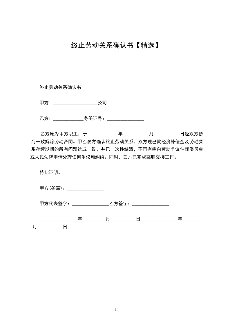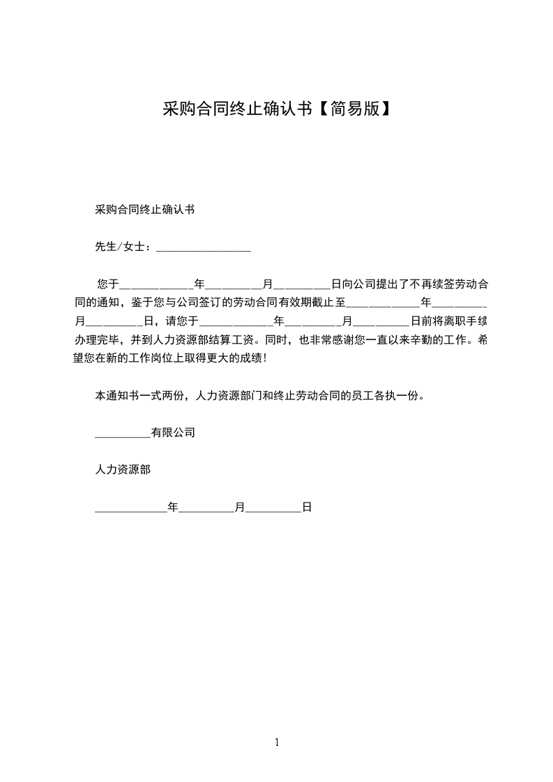 本通知书一式两份,人力资源部门和终止劳动合同的员工各执一份。