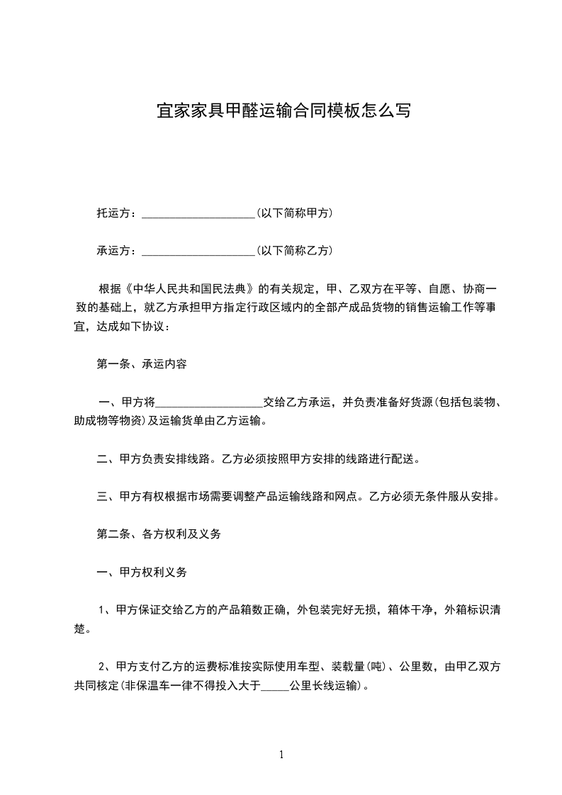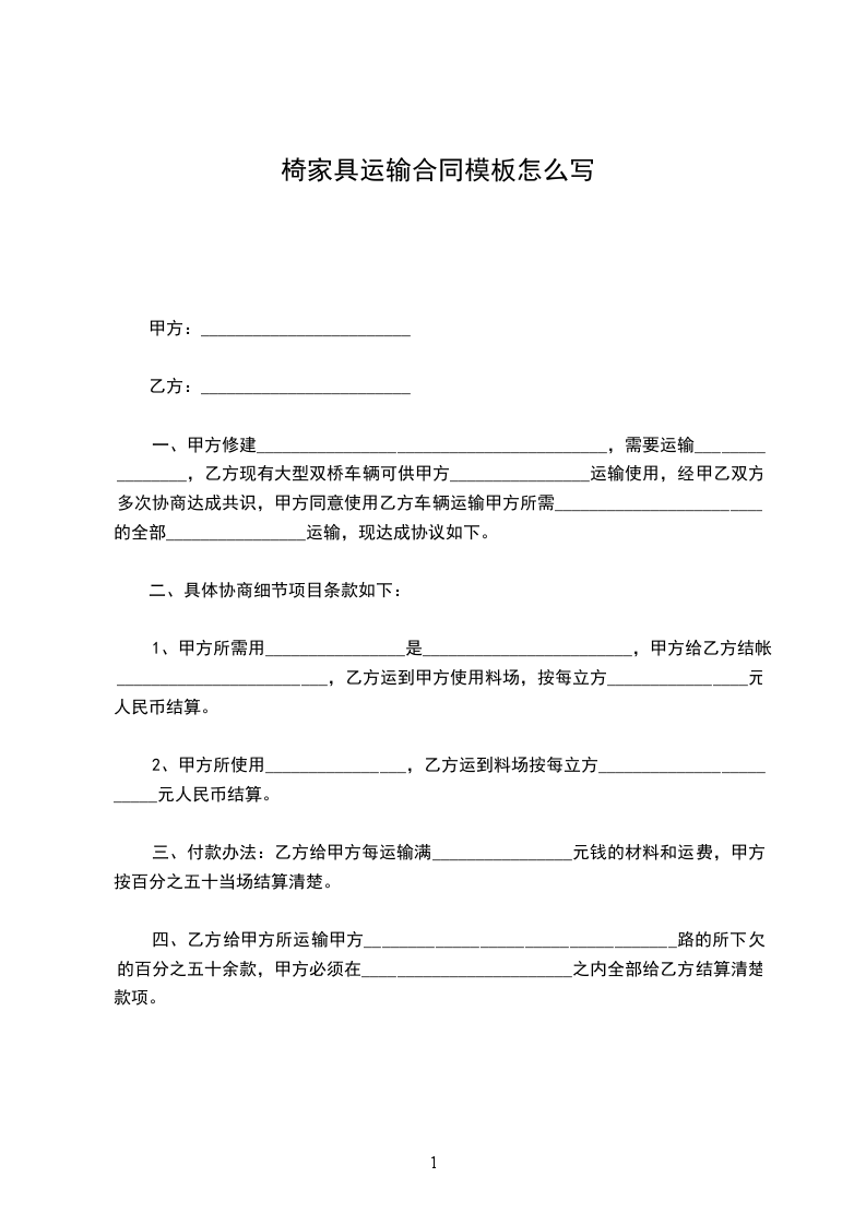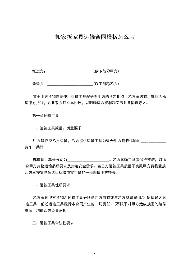合家家具运输合同模板怎么写