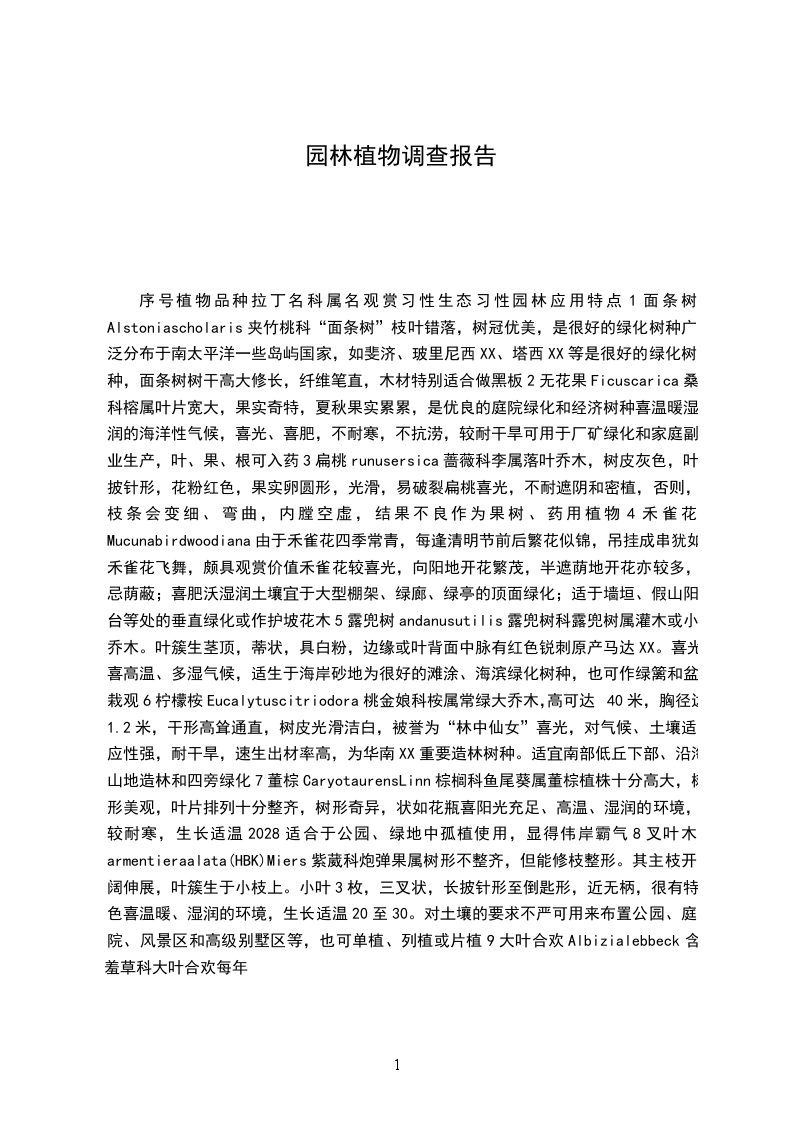 园林植物调研报告学院:土木与建筑学院专业:城乡规划姓名:指导老师:陈X课程:园林植物与应用.3调研目的:经过本次调研实地观察、记录常见园林植物,学习植物认知方法,了解常见园林植物的科属、形态和用途等。调研地点:湖南省XX调研方法: