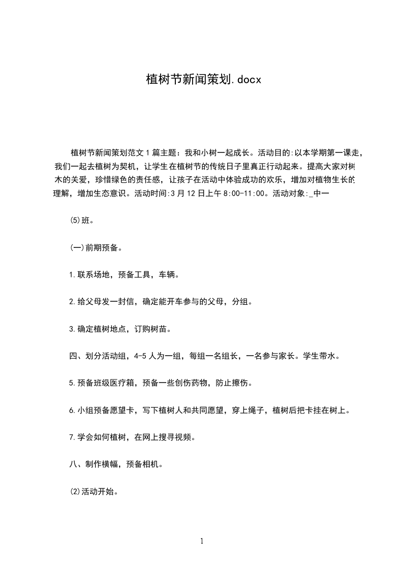 植树节新闻策划范文1篇主题:我和小树一起成长。活动目的:以本学期第一课走,我们一起去植树为契机,让学生在植树节的传统日子里真正行动起来。提高大家对树木的关爱,珍惜绿色的责任感,让孩子在活动中体验成功的欢乐,增加对植物生长的理解,增加生态意识。活动时间:3月12日上午8:00-11:00。活动对象:_中一
