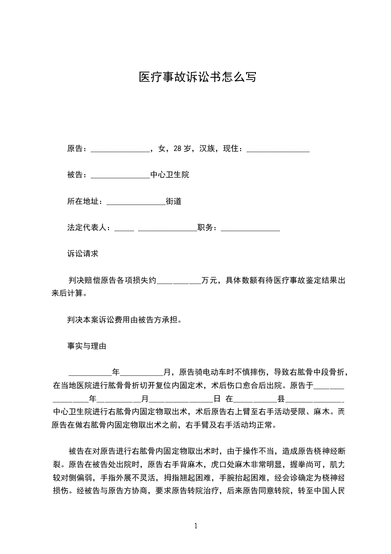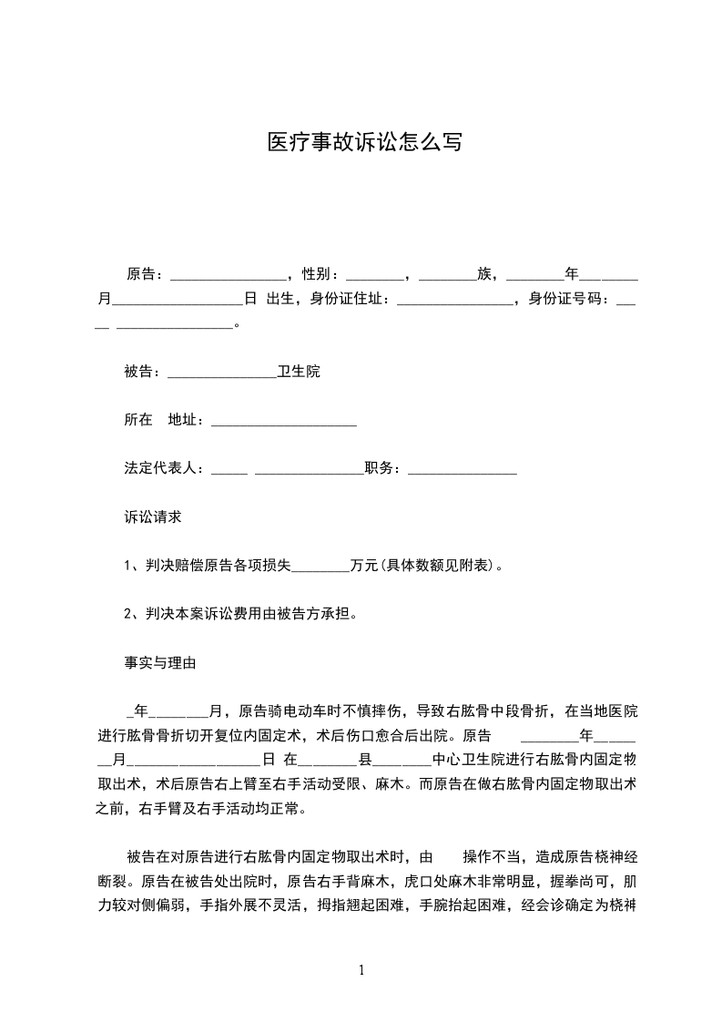 ________年________月,原告骑电动车时不慎摔伤,导致右肱骨中段骨折,在当地医院进行肱骨骨折切开复位内固定术,术后伤口愈合后出院。原告于________年________月________日在________县________中心卫生院进行右肱骨内固定物取出术,术后原告右上臂至右手活动受限、麻木。而原告在做右肱骨内固定物取出术之前,右手臂及右手活动均正常。