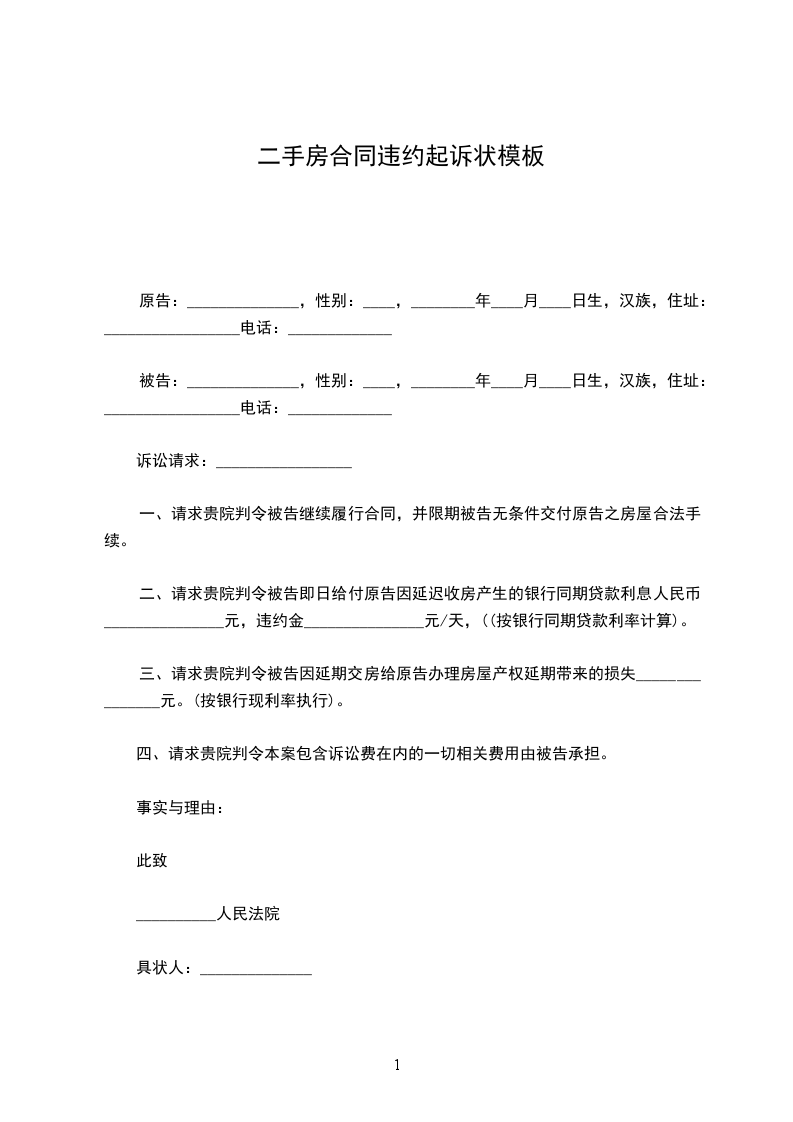 原告:______________,性别:____,________年____月____日生,汉族,住址:_________________电话:_____________