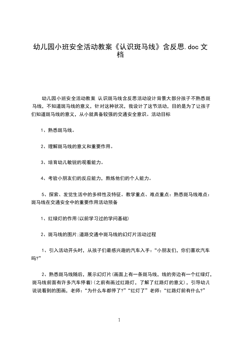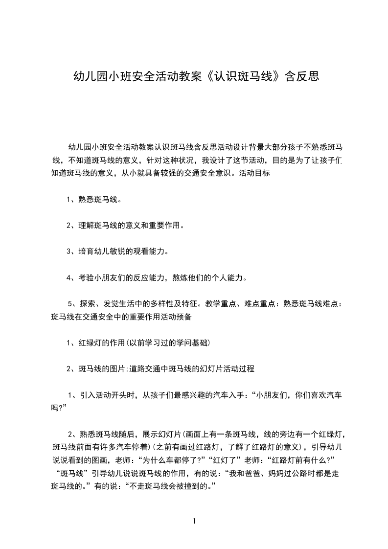 幼儿园小班安全活动教案认识斑马线含反思活动设计背景大部分孩子不熟悉斑马线,不知道斑马线的意义,针对这种状况,我设计了这节活动,目的是为了让孩子们知道斑马线的意义,从小就具备较强的交通安全意识。活动目标