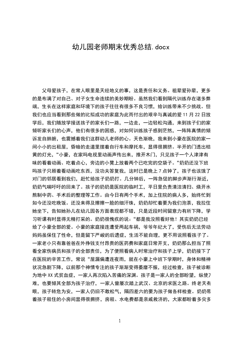 范文“滴答滴答”随着那时钟的转动,转眼间一个学期的工作又结束了,回顾这学期的点点滴滴,真是有喜有忧,幼儿园老师个人总结。孩子们的每一点进步都倾注了我们每位老师的心血,当然更离不开家长对我们工作的支持和配合。看着孩子们一张张活泼,可爱的笑脸我觉得自己的付出并没有白费.现将这学期的如下:一、思想方面作为一名优秀的幼儿园教师,只有反复的,不断地学习进取,才能更加进步。在这一个学期里,为了让自己的思想更上了一个新的台阶,我们老师一起学习了纲要。并在生活中实践:根据幼儿不同年龄阶段的兴趣、爱好、以及个性特征来采用不同的教育方法,坚持正面教育,提倡以鼓励表扬的方式去引导幼儿。提高依法从教的水平,并认真履行岗位职责,关心、爱护每一位幼儿,严格遵守幼儿园的规章制度。