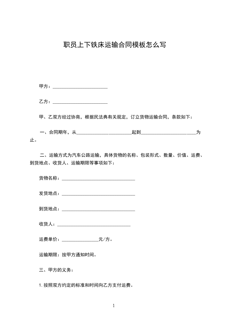 职员上下铁床运输合同模板怎么写