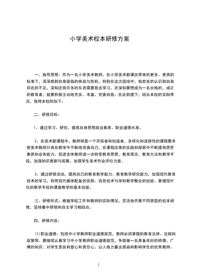 一、指导思想:作为一名小学美术教师,在小学美术新课改带来的更多、更高的标准下,深深感到自身面临的挑战与危机,特别在这次国培中,我愈发的认识到自身存在的不足,深知还有许多的东西需要我去学习,亦深知要想成为一名合格的,成功的教育者,就要积极主动地充实、丰富、完善自我。在此前提下,结合本校的实际情况,我将本校的如下: