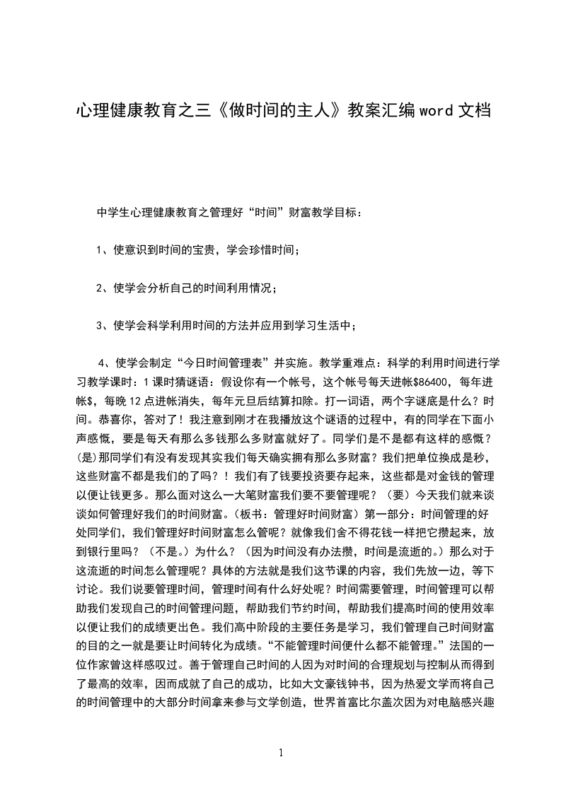 中学生心理健康教育之管理好“时间”财富教学目标: