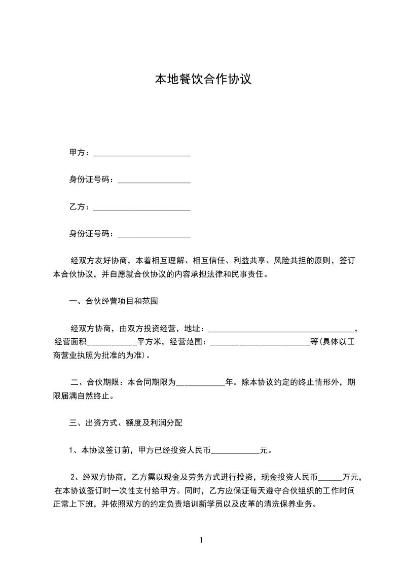 2、经双方协商,乙方需以现金及劳务方式进行投资,现金投资人民币______万元,在本协议签订时一次性支付给甲方。同时,乙方应保证每天遵守合伙组织的工作时间正常上下班,并依照双方的约定负责培训新学员以及皮革的清洗保养业务。