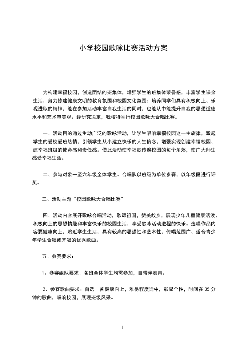 四、比赛要求:演唱内容:各班自选曲目一首,所唱歌曲必须切合主题。