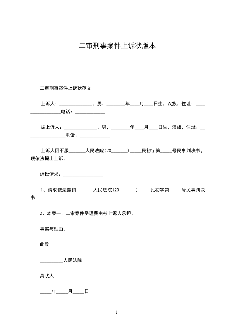上诉人(原审被告):_______________,性别________,________年________月________日生,________族,住址________________________。