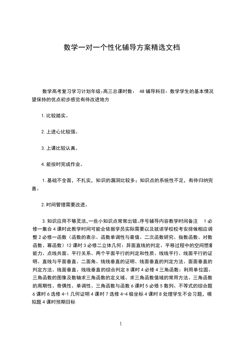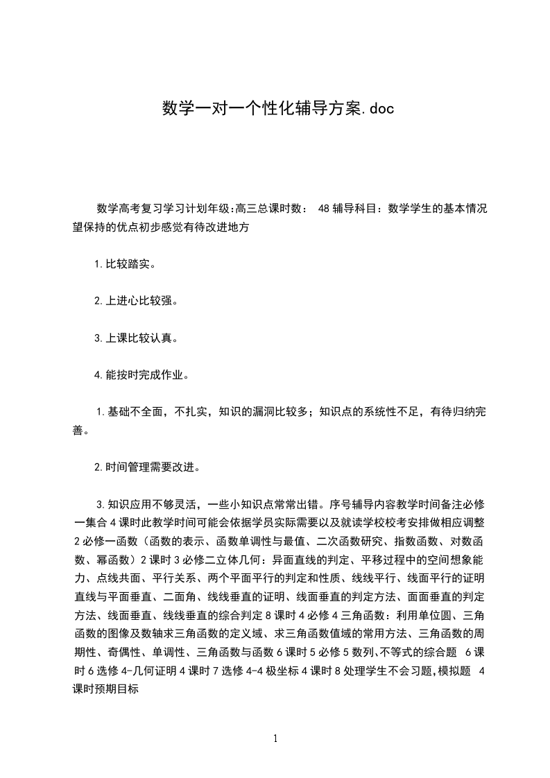 数学高考复习学习计划年级:高三总课时数:48辅导科目:数学学生的基本情况望保持的优点初步感觉有待改进地方