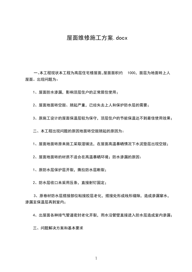 2.1本工程为屋面瓦维修工程约600M2脚手架的设置31按照建筑物高度及外型特征,将脚手架分层搭设。
