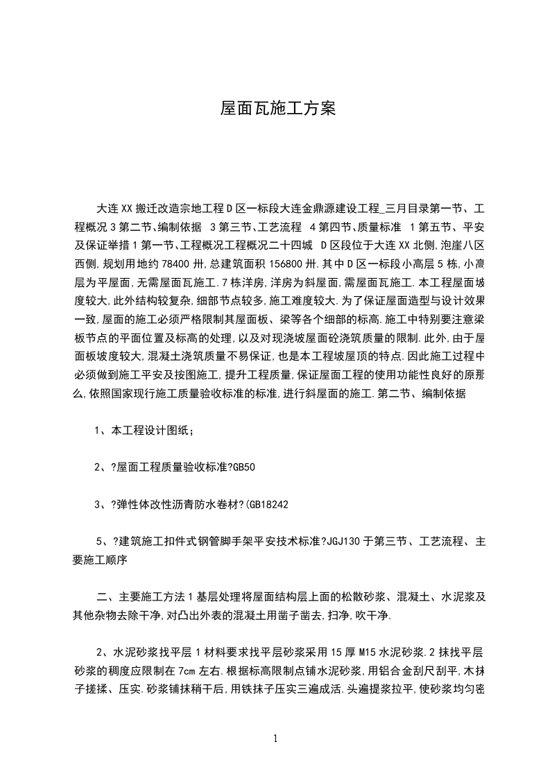 屋面瓦维修工程施工方案编制依据11建筑施工安全检查标准JGJ59-99。