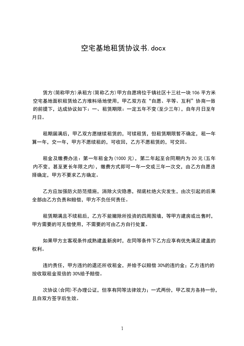 出租方:(以下简称甲方)承租方:(以下简称乙方)根据及相关的法律法规,为了明确甲、乙双方的权利、义务,经双方平等协商签订本合同。