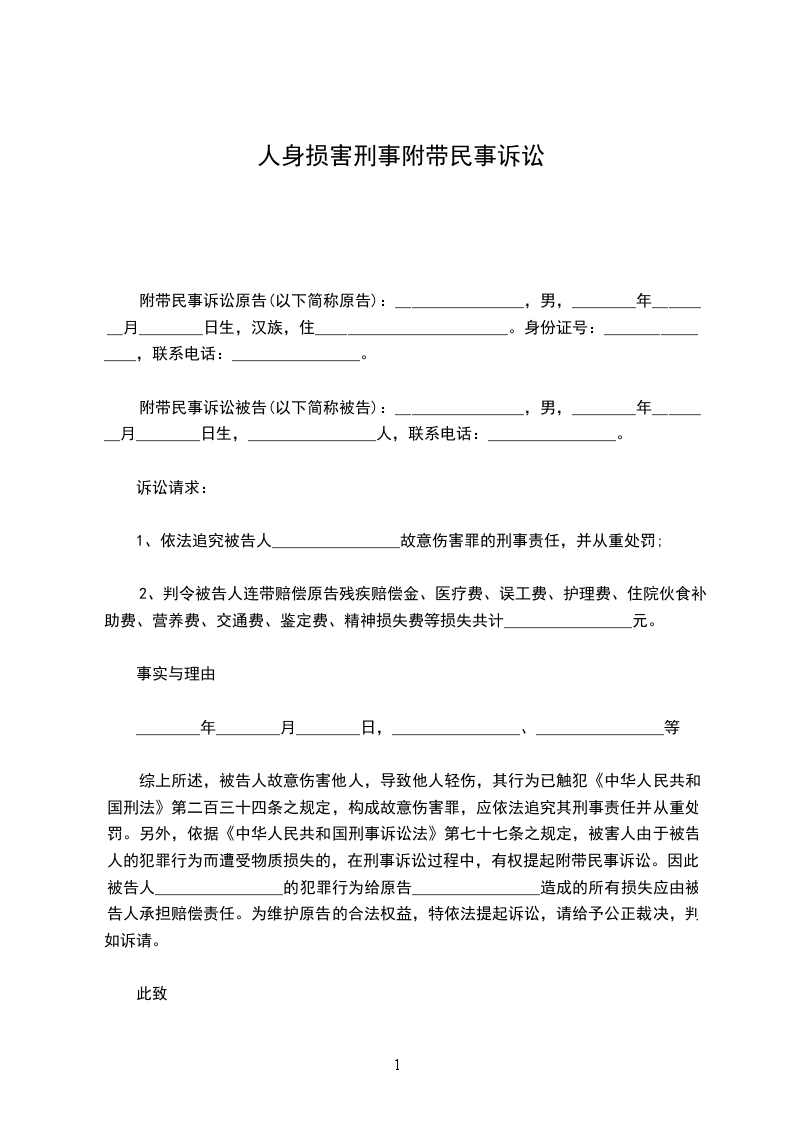 附带民事诉讼被告(以下简称被告):________________,男,________年________月________日生,________________人,联系电话:________________。
