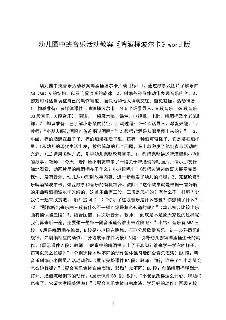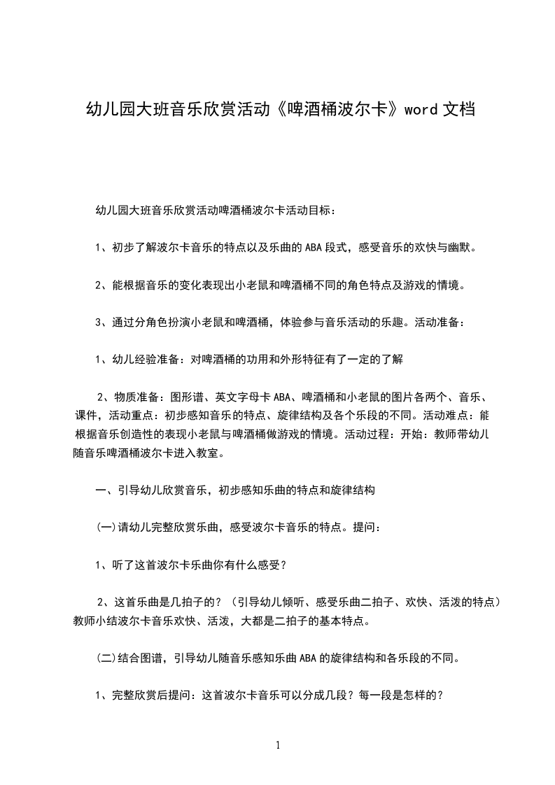 幼儿园大班音乐欣赏活动啤酒桶波尔卡活动目标: