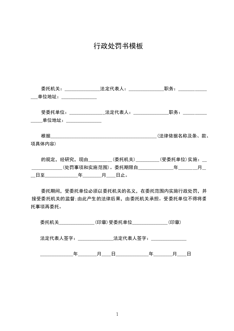的规定,经研究,现由__________(委托机关)__________(受委托单位)实施:_______________(处罚事项和实施范围)。委托期限自_______________年________月____日至______________年________月____日止。