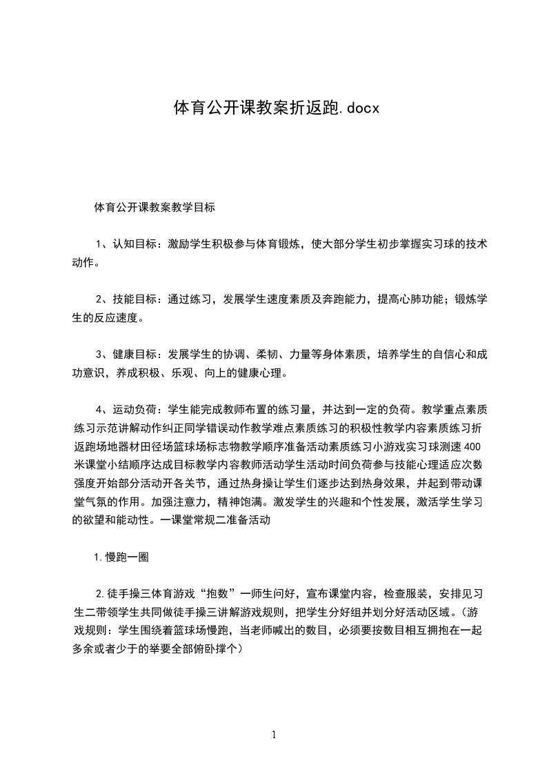 体育公开课教案教学目标