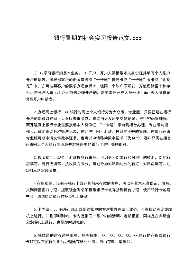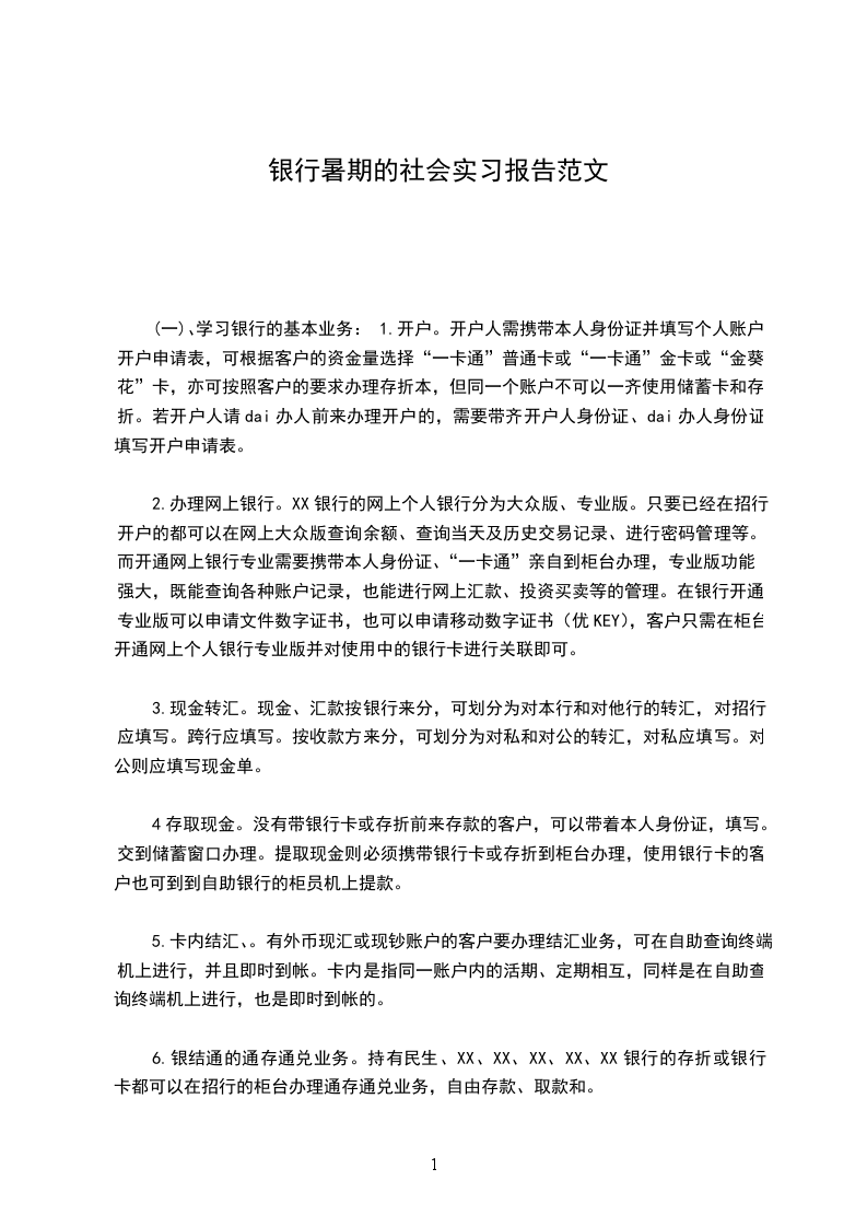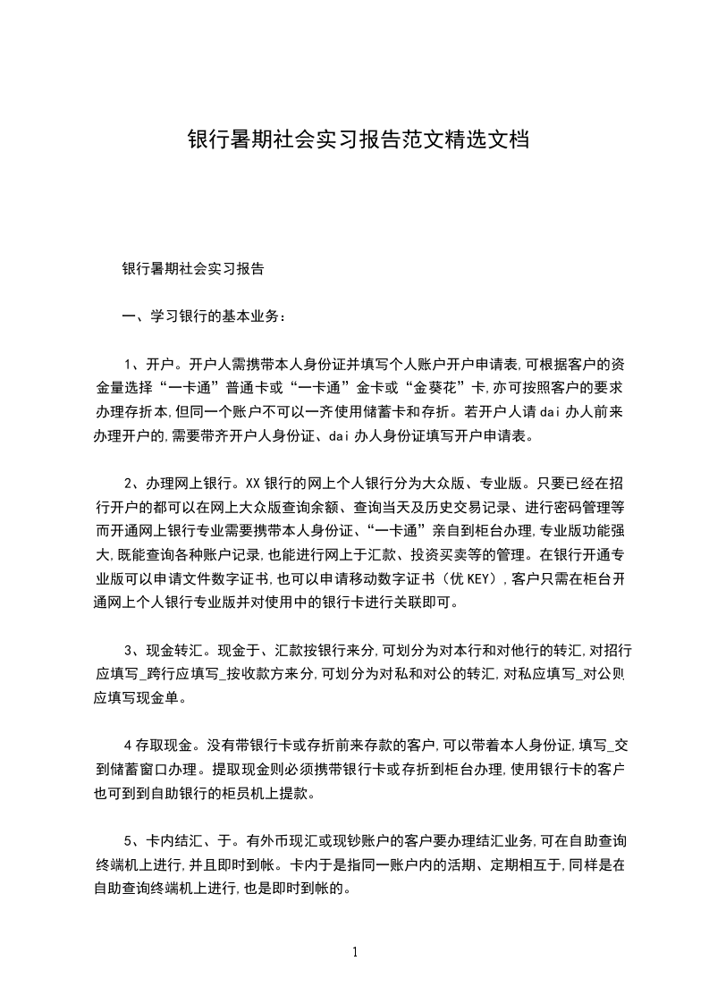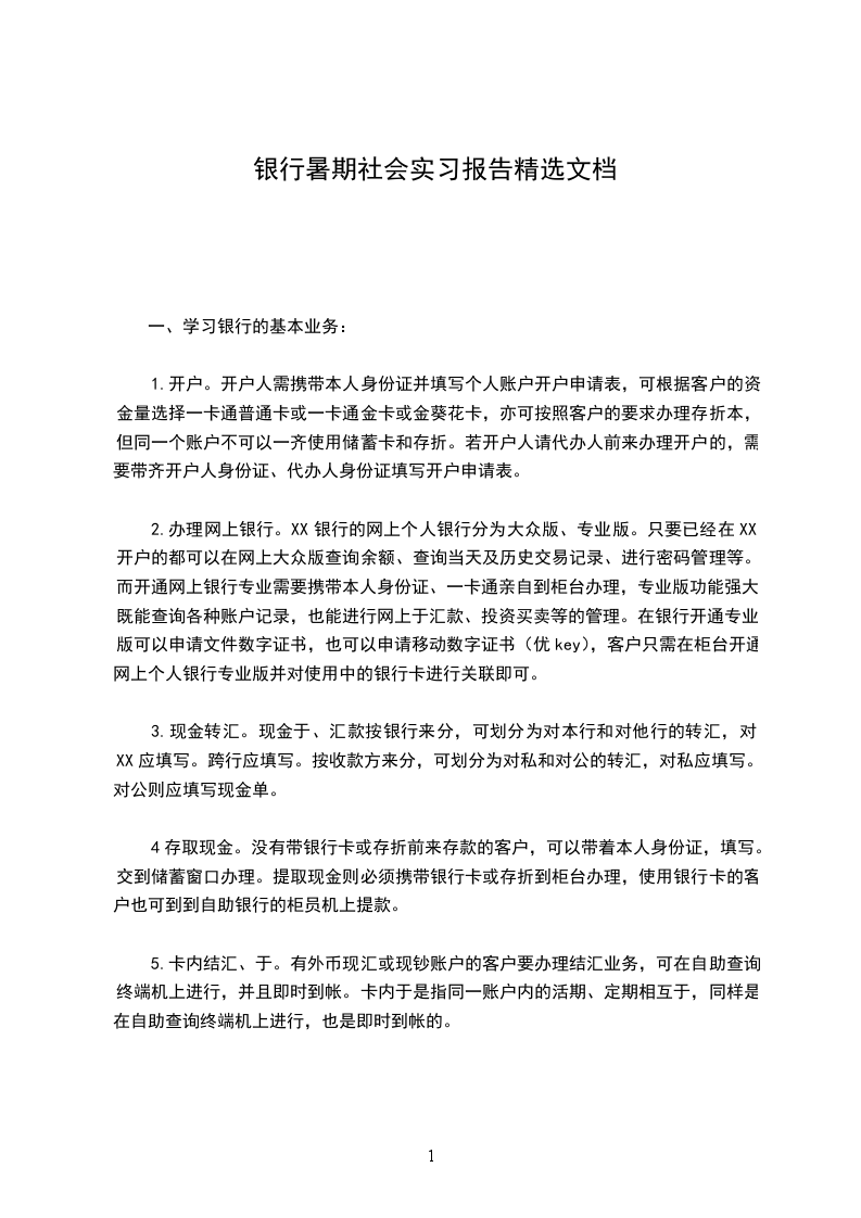 (一)、学习银行的基本业务:1.开户。开户人需携带本人身份证并填写个人账户开户申请表,可根据客户的资金量选择“一卡通”普通卡或“一卡通”金卡或“金葵花”卡,亦可按照客户的要求办理存折本,但同一个账户不可以一齐使用储蓄卡和存折。若开户人请dai办人前来办理开户的,需要带齐开户人身份证、dai办人身份证填写开户申请表。