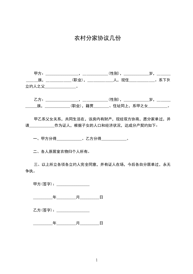 甲方:_________________,_____________(性别),_____________岁,_____________族,_____________(职业),_____________人,现住_____________。系下列立约人之父________________。