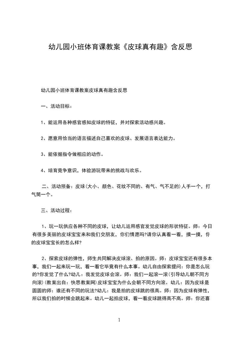 幼儿园小班体育课教案皮球真有趣含反思