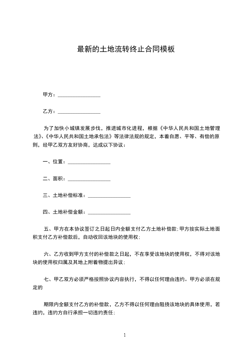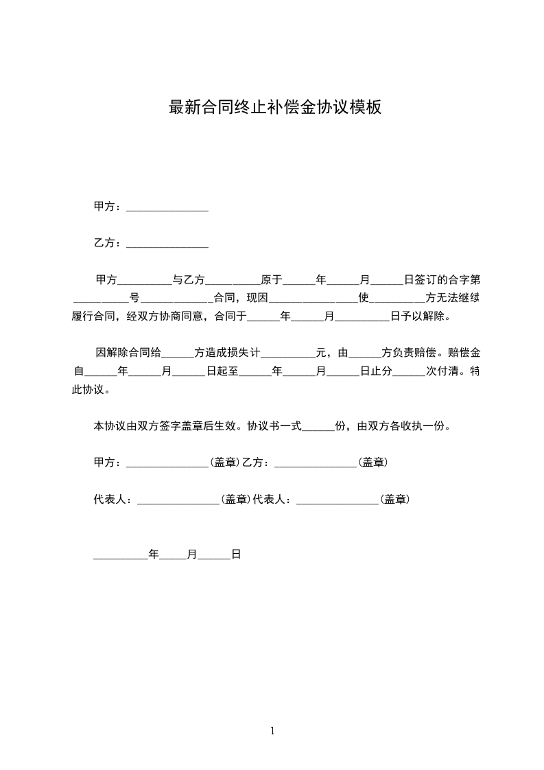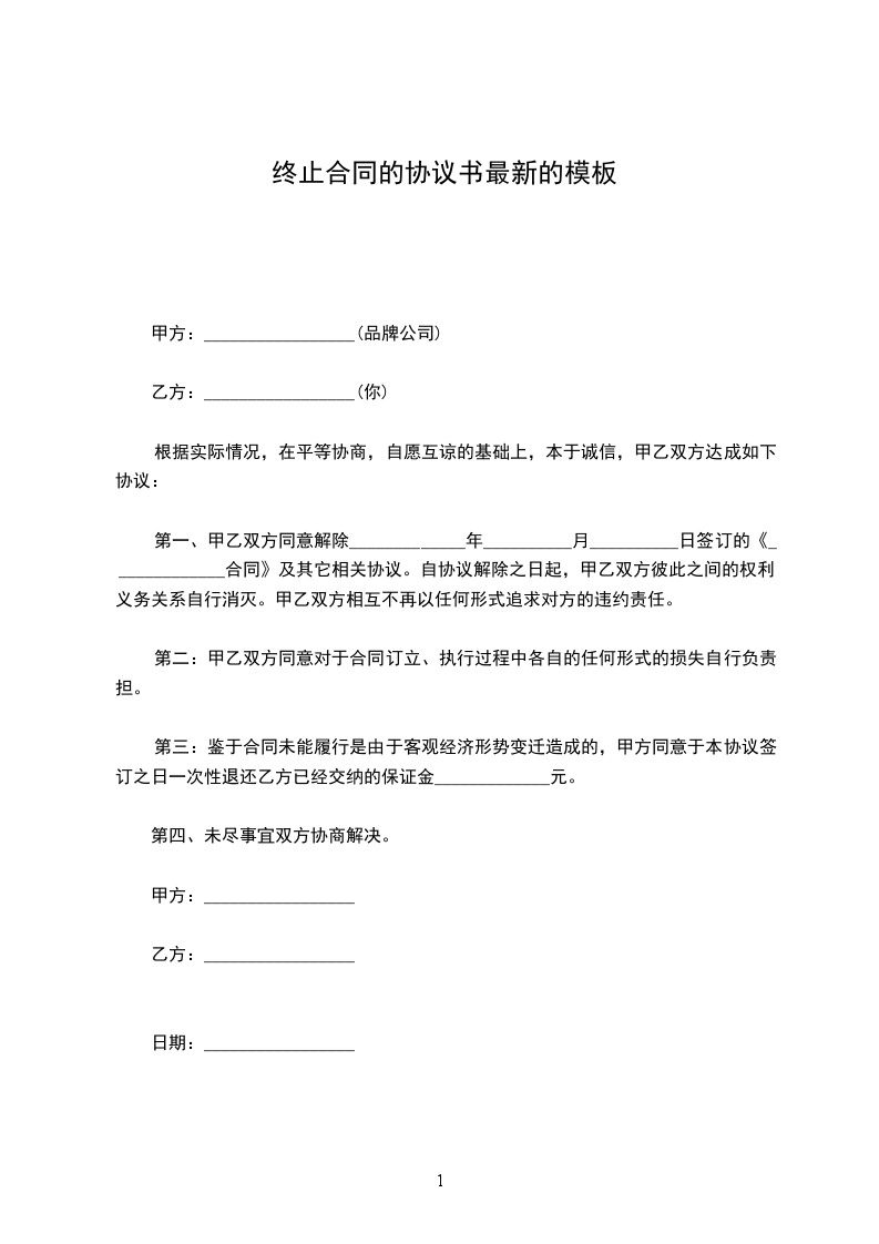终止合同的协议书最新的模板