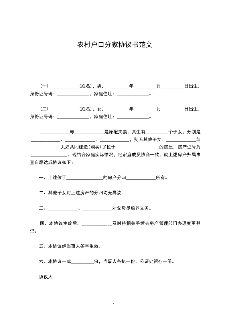 ________________与________________是原配夫妻,共生有________个子女,分别是________________、________________、________________,别无其他子女。________________与________________夫妇共同建造(购买)了位于________________的房屋,房产证号为________________。现结合家庭实际情况,经家庭成员协商一致,就上述房产归属事宜自愿达成协议如下: