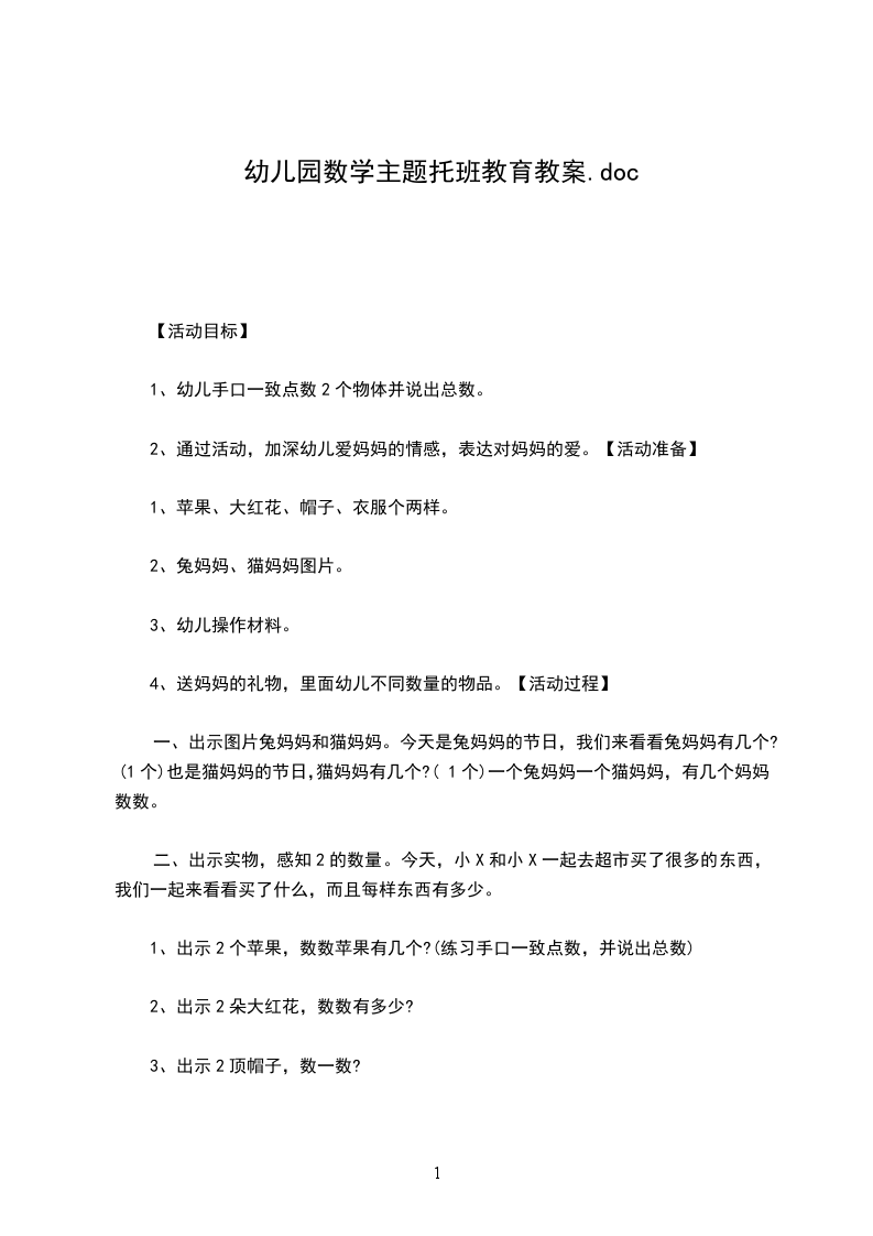 4、送妈妈的礼物,里面幼儿不同数量的物品。【活动过程】
