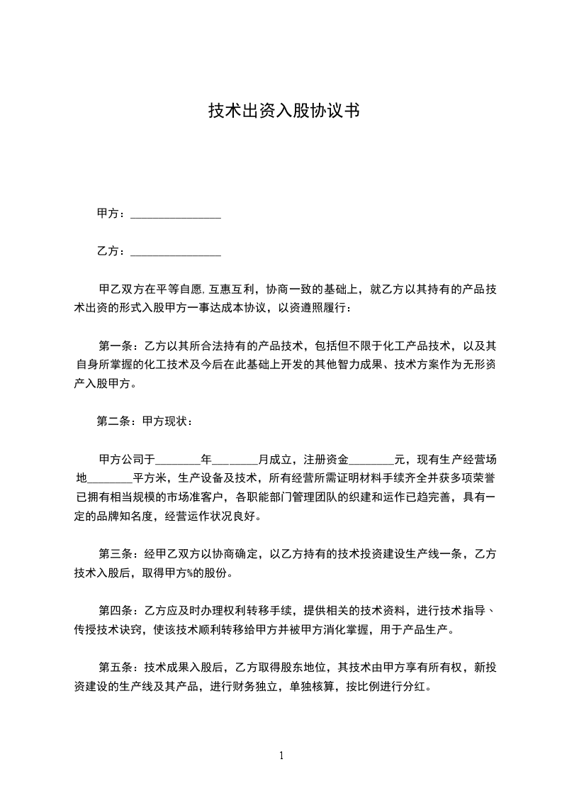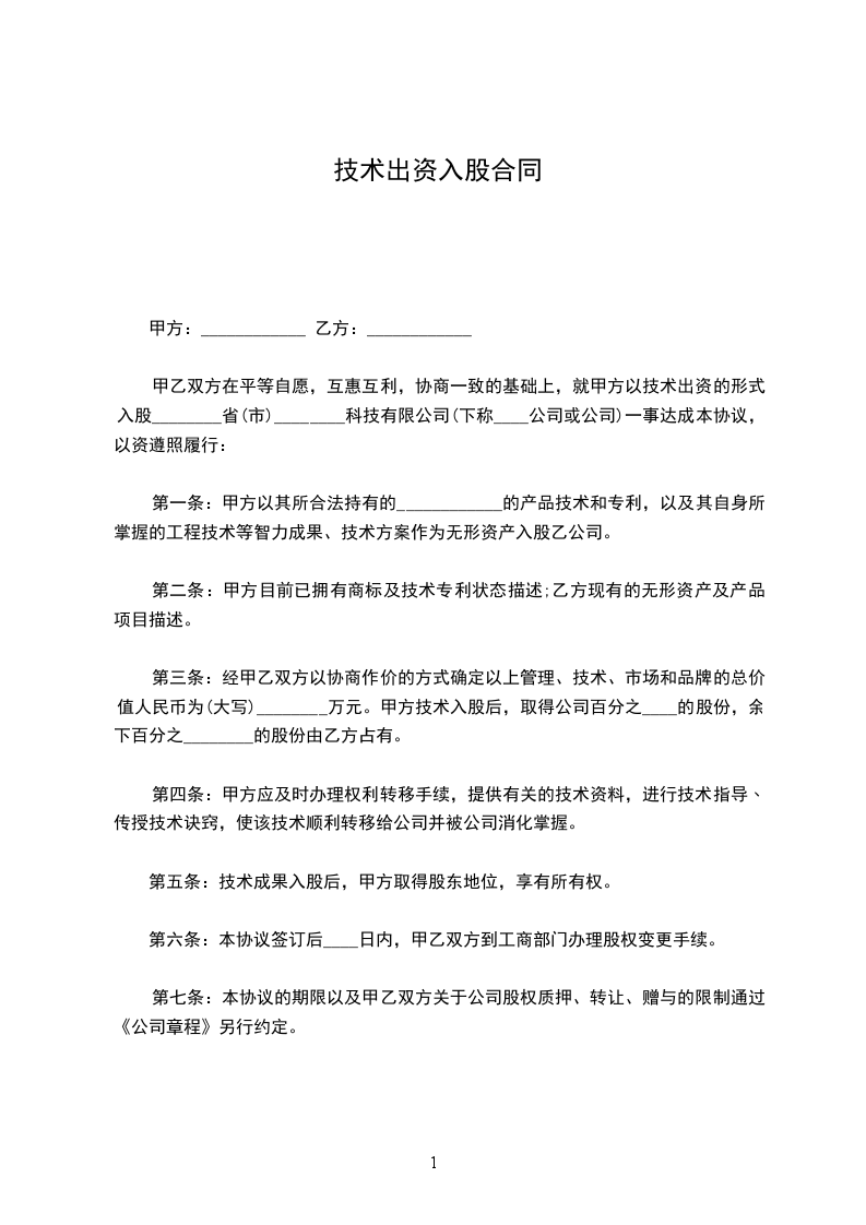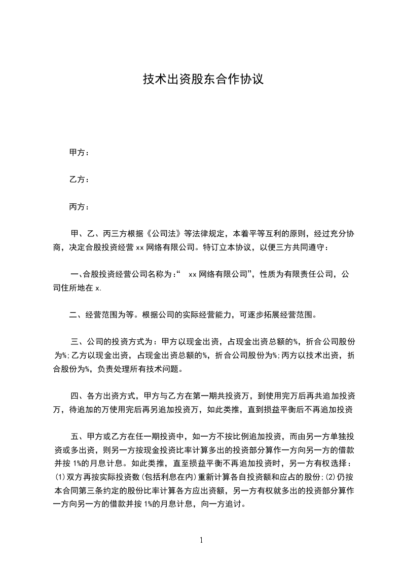 三、公司的投资方式为:甲方以现金出资,占现金出资总额的_____%,折合公司股份为_____%;乙方以现金出资,占现金出资总额的_____%,折合公司股份为_____%;丙方以技术出资,折合股份为_____%,负责处理所有技术问题。
