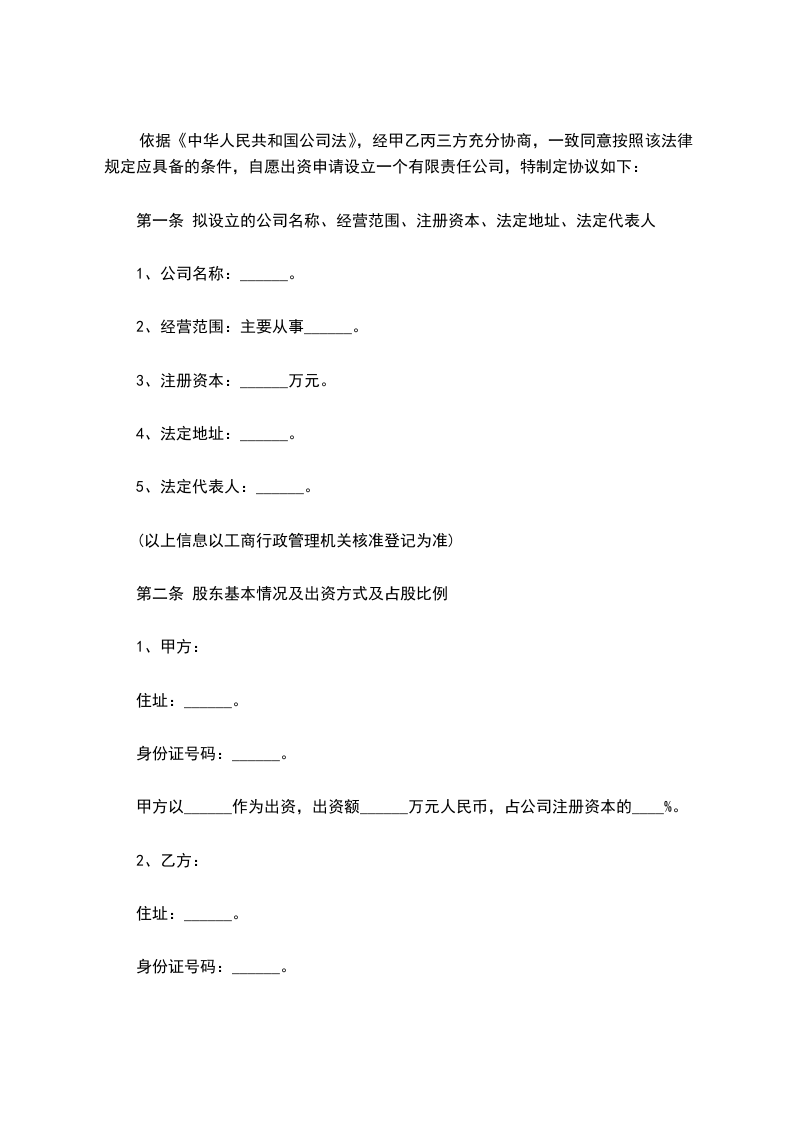 甲、乙、丙三方根据《公司法》等法律规定,本着平等互利的原则,经过充分协商,决定合股投资经营xx网络有限公司。特订立本协议,以便三方共同遵守: