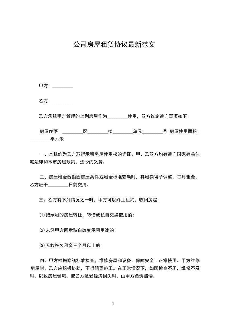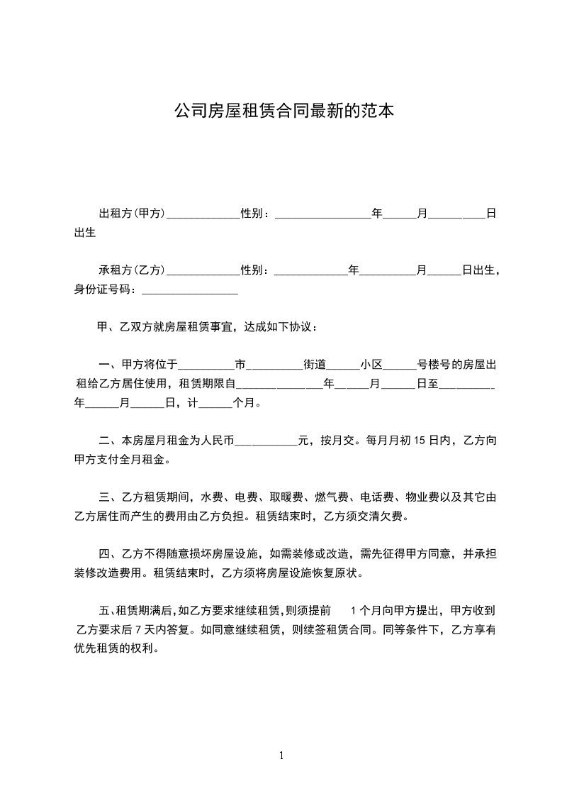 一、甲方将位于__________市的房屋出租给乙方居住使用,租赁期限自________年________月________日至________年________月________日,计______个月。