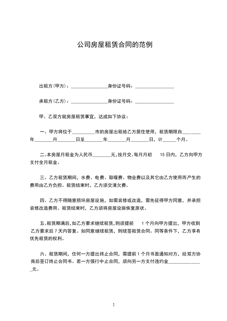 一、甲方将位于__________市的房屋出租给乙方居住使用,租赁期限自________年________月________日至________年________月________日,计______个月。