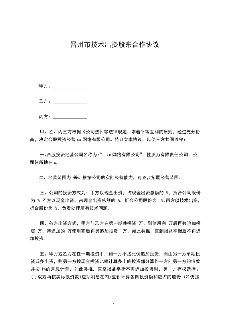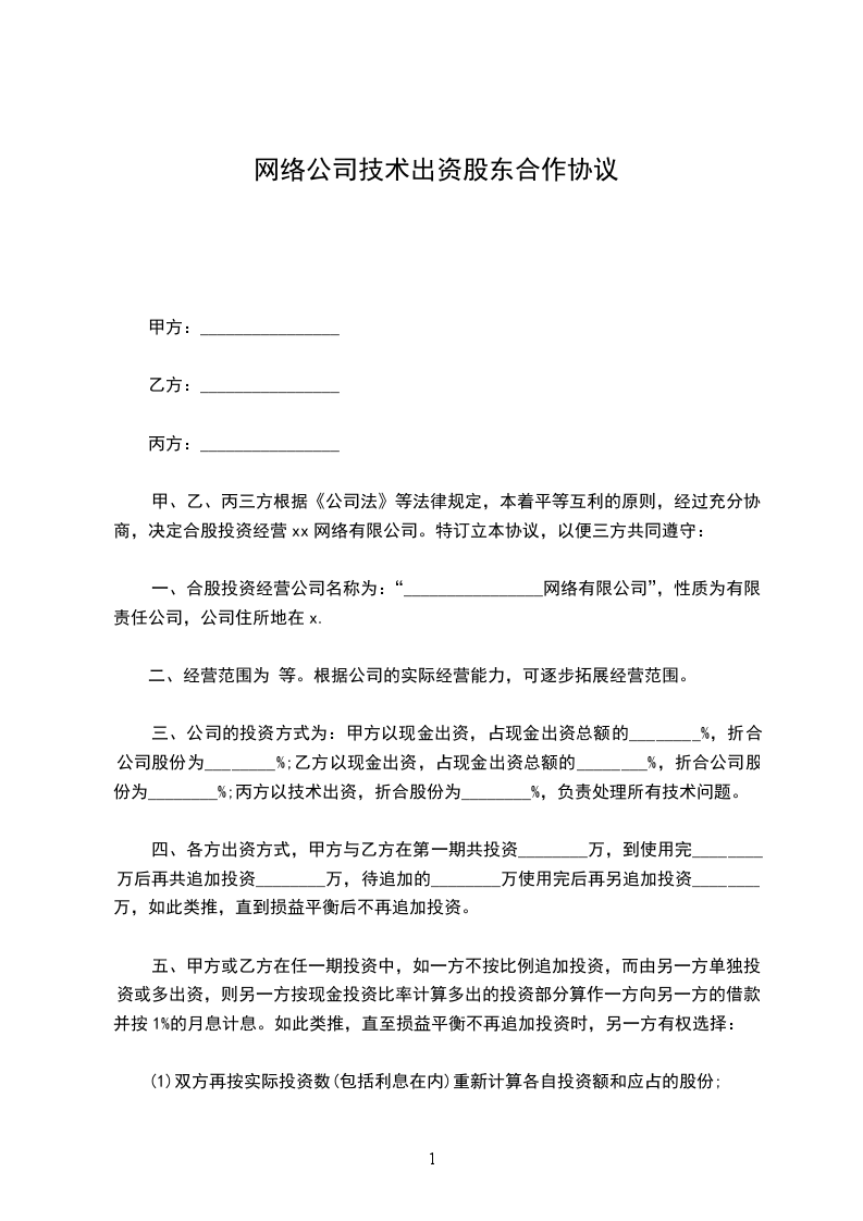 甲、乙、丙三方根据《公司法》等法律规定,本着平等互利的原则,经过充分协商,决定合股投资经营xx网络有限公司。特订立本协议,以便三方共同遵守: